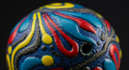 A close up of a colorful object on top of wood, AI