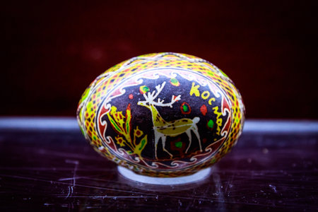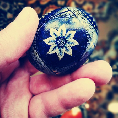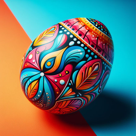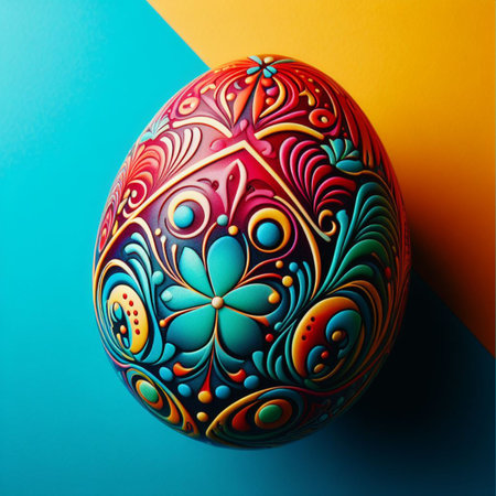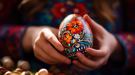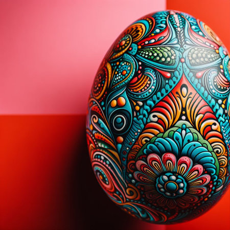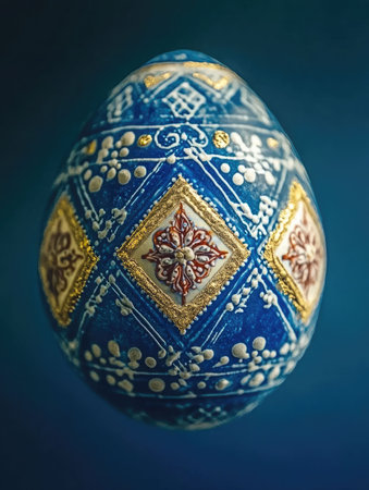 Intricate hand-painted easter egg with traditional floral patterns.