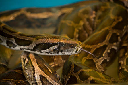 Wild snake 'Python' beautiful reptile. Selective focus and toned image.