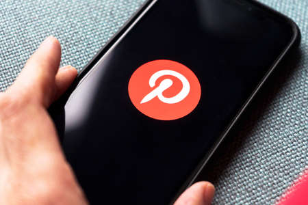 LONDON, UK - March 2021: Pinterest logo, popular image sharing platform