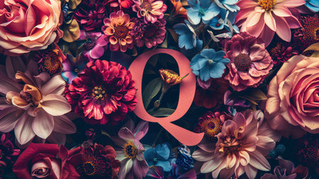 Letter Q with flowers background