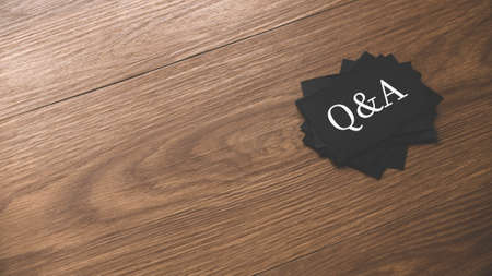 A stack of black paper written with Questions and answers or Q&A on wooden background with copy space.