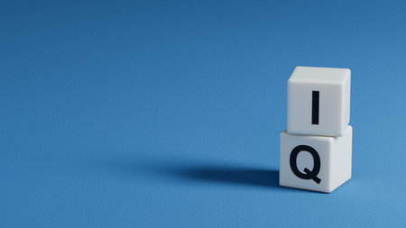 Word EQ,IQ of wooden letters on a blue background