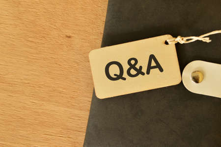 Phrase Q&A written on wooden label tag. Business concept.