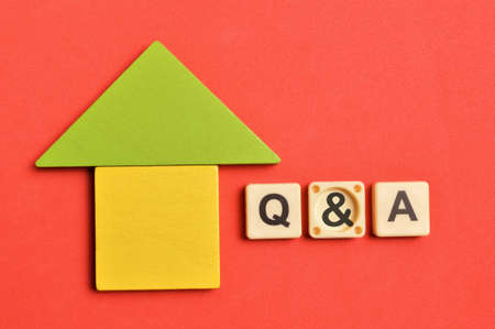 Top view of toy house with text Q and A. Real estate concept