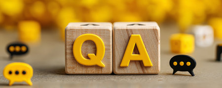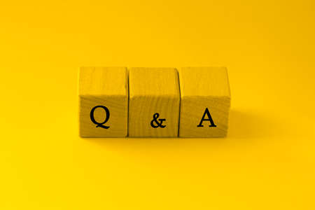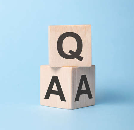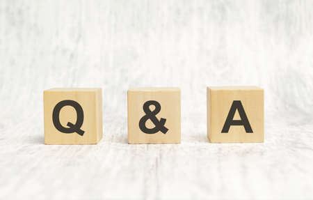 q and a sign on wooden cubes on wooden background