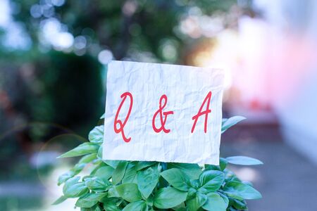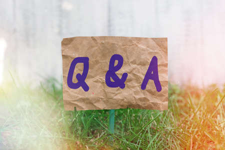 Conceptual hand writing showing Q And A. Concept meaning defined as questions being asked and answers Plain paper attached to stick and placed in the grassy land