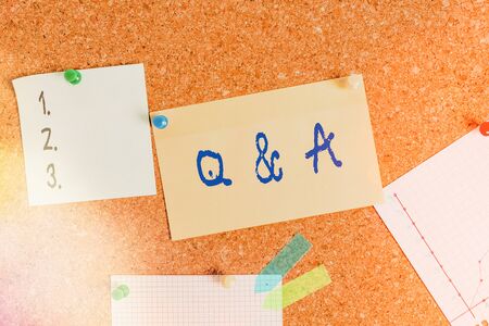 Word writing text Q And A. Business photo showcasing defined as questions being asked and answers Corkboard color size paper pin thumbtack tack sheet billboard notice board