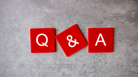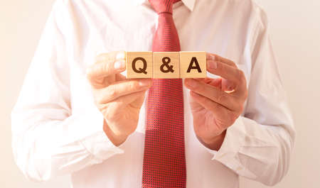Q and A - Questions and Answers text sign on wooden cube blocks of white t-shirt with red tie, faq
