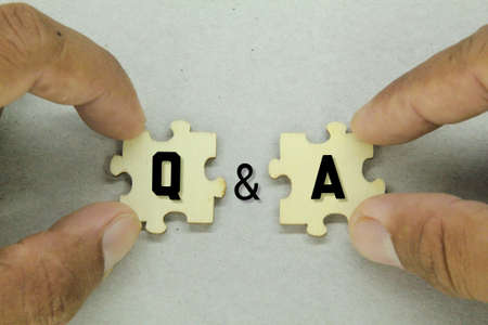 fingers holding a wooden puzzle with the letters Q and A. question and answer concept
