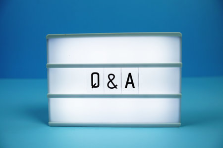 Q & A (Question and Answer) letterboard text on LED Lightbox on blue background