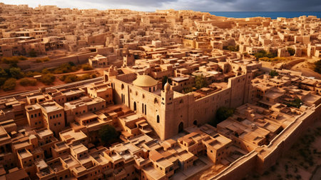 AI Generated. Aerial View of a Ruined Ancient City with a Large Building
