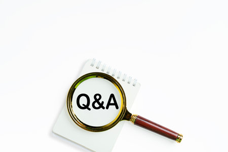 Q & A word on wooden block with magnifying glass. White background. Q and A written on white paper with glasses. financial questions and answers concept