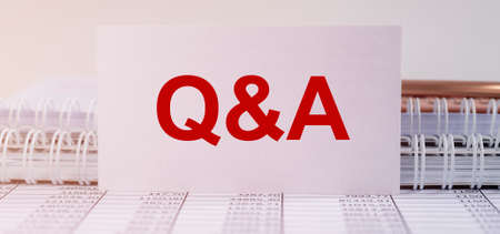 Q and A - Questions and Answers text on business white card on office table, banner.