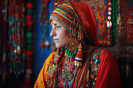 an afghan woman in her traditional dress and headdre at the soukhi market, kashan province, xinjiang, china. Generative Ai
