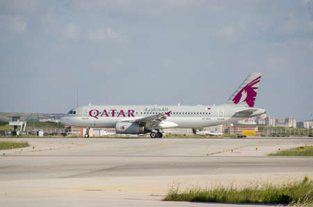 Luqa, Malta - September 23, 2019: Oneworld (Qatar Airways) Airbus A320-232 (REG: A7-AHO) taking off to Doha, Qatar.