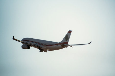 An aircraft taking off from Doha International Airport