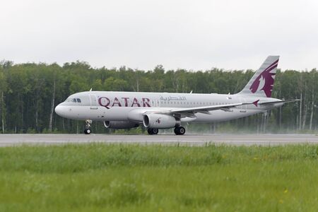 MOSCOW, RUSSIA - MAY 19, 2016: Qatar airlines Airbus A320 take off to the runway at Domodedovo International airport.