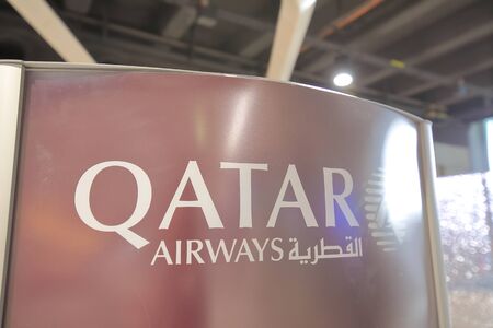 Paris France - June 19, 2019: Qatar airline company sign