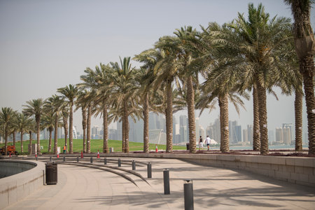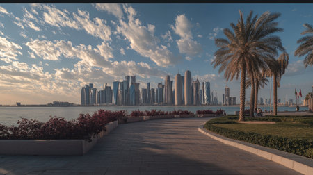Views of high-rise buildings by the sea in the corniche area of ​​Doha, Qatar