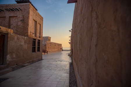 Alley leading to the seafront promenade. Taken early morning in the old souk of Al Wakrah, Qatar