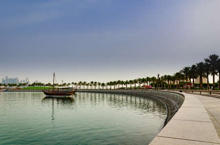 Doha, Qatar - April 9, 2006: The modern area of ??the city seen from the seafront gardens