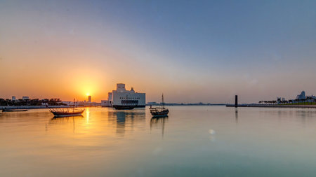 Sunset near Museum of Islamic Art in Doha timelapse, Qatar