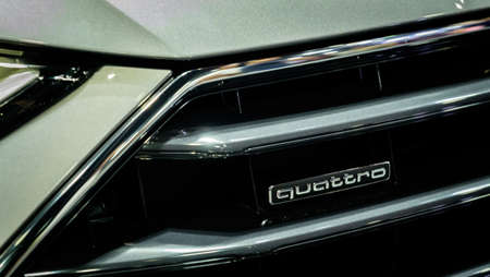 Bangkok, Thailand - December 1, 2019: The Quattro badge of Audi A7 Sportback 45TFSI Quattro showcase at the Thailand International Motor Expo 2019 at Impact Challenger Hall