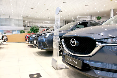 Stock of cars in showroom of automobile dealer