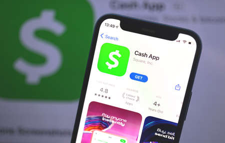 Kharkov, Ukraine - May 28, 2021: Cash app on the screen on the background of symbol dollar