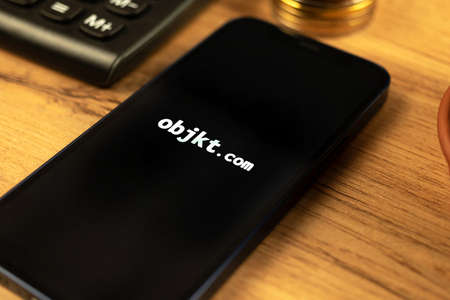 Kharkov, Ukraine - December 20, 2021: Objkt.com NFT marketplace website on mobile phone screen close-up