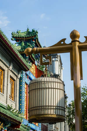 View of Qianmen street in Beijing on a sunny day. Typical street in China