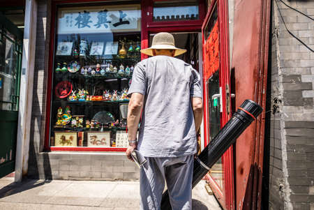 BEIJING, СHINA - JUNE 01, 2019: Old Chinese street artist.