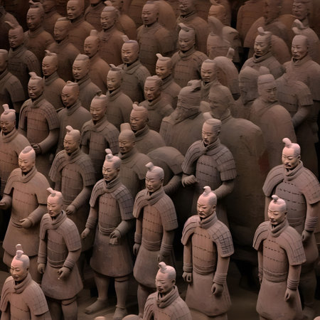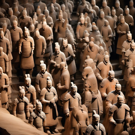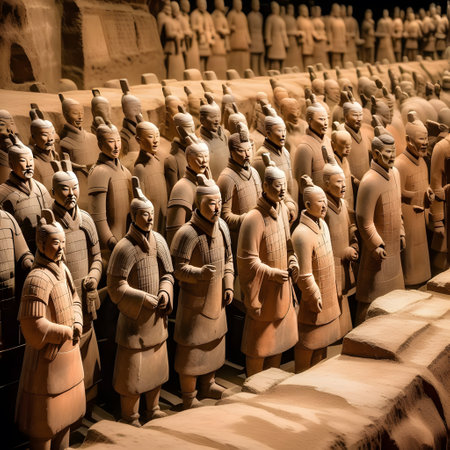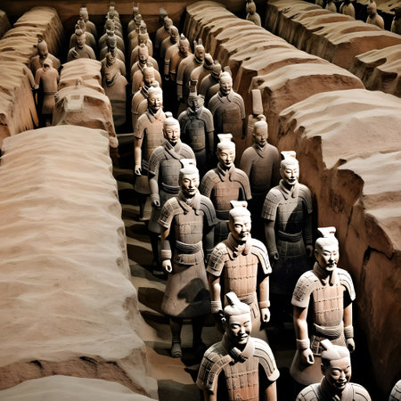 The Terracotta Army, a grand display of terracotta sculptures depicting the ancient soldiers of Emperor Qin Shi Huang, stands in solemn formation.