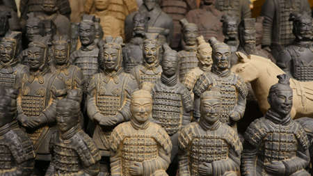 Xi'an, China - July 22, 2014: Miniatures of terracota warriors at the tombs of the Terracota Army