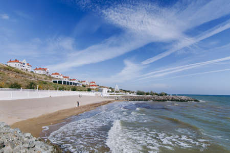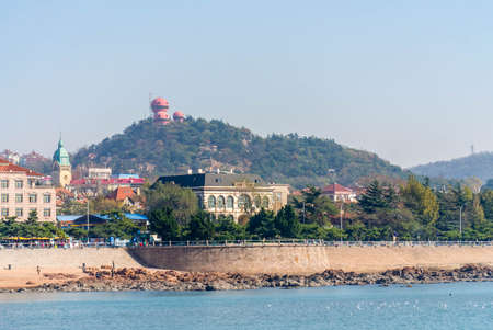 QINGDAO, CHINA - NOVEMBER 15: View of a local beach with waterfront buildings and cafes at Badaguan Scenic area on November 15, 2019 in Qingdao