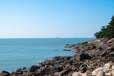QINGDAO, CHINA - NOVEMBER 15: This is a beach view in the Badaguan scenic area, a popular travel destination on November 15, 2019 in Qingdao