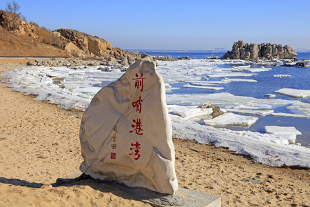 Qinhuangdao - Feb 9: sentinel harbour carved on the rock, February 9, 2016, qinhuangdao city, hebei province, China