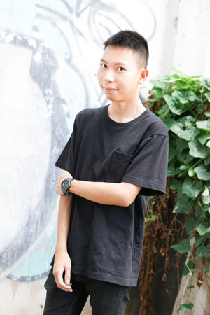 The confident smile of a mature man, the charming demeanor of an Asian man