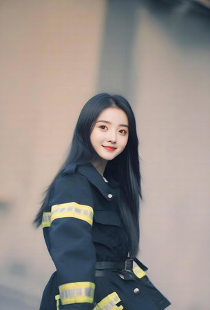 Digital artwork of korean honey hair gorgeous woman wearing black blazer long coat with gold embroidery
