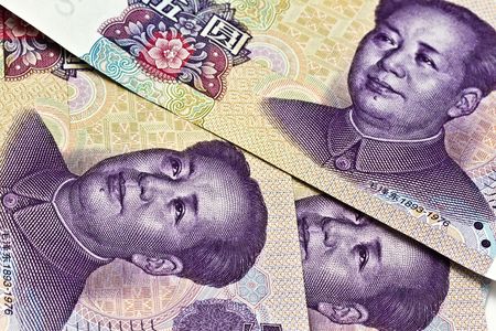 Chinese Yuan renminbi banknotes, paper money, Bank of China currency. Chinese financial system. Income and payments concept.