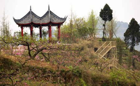 The ancient architecture of the Chinese-style garden Qiaojiaolou in the mountains and forests