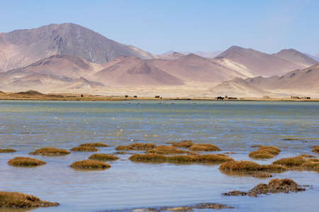 Located 3.500m above the sea level, along the road between Kashgar and Tashkurgan, the Kala Kule Lake offers some amazing sights and colors, Xinjiang, China.