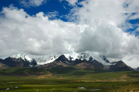 Beautiful nature landscape view of blue sky Qilian fields in Qinghai China