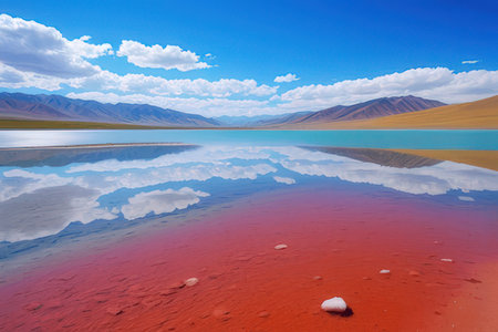 Beautiful plateau lake and blue sky reflection, natural landscape on Qinghai-Tibet plateau, golmud kunlun mountain, China