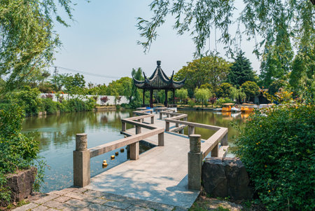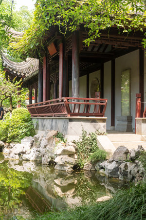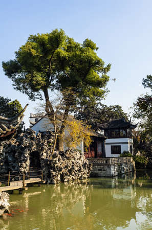 Beautiful Chinese garden in Suzhou, Jiangxi, China.