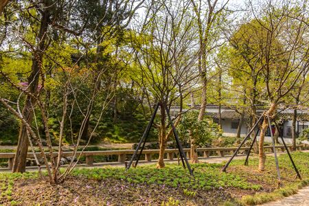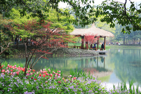 Beautiful landscaped garden in a park in Shanghai, China.