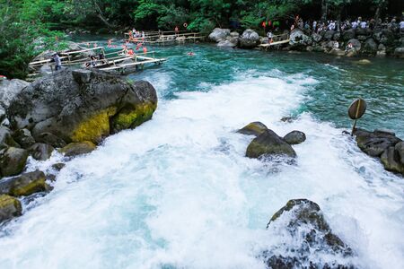 Quang Binh, Vietnam - July 13, 2018: Nuoc Mooc spring - Mooc stream Phong Nha Ke Bang national park