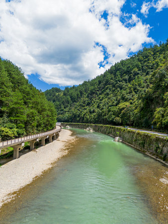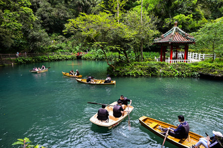 Wulai District, New Taipei City, Taiwan - APR 10, 2022: Yun-Hsien Park Artificial Lake in Wulai.