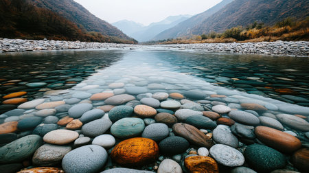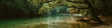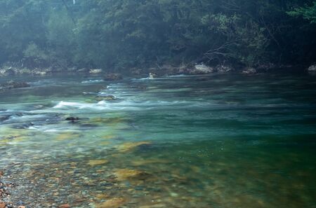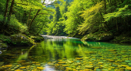 Beautiful landscape of a river flowing through a green forest in the mountains